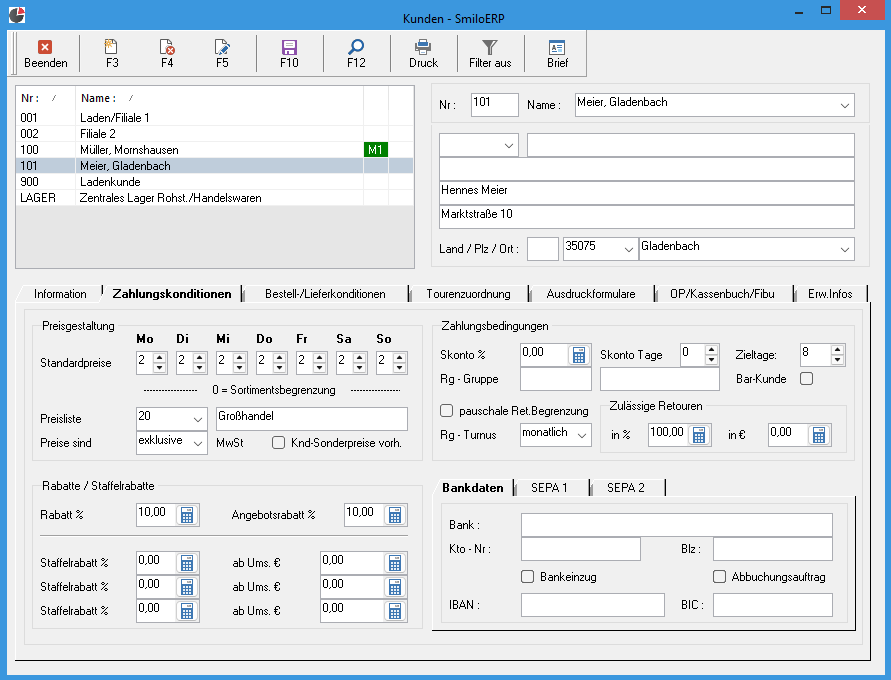 Über die Kundenverwaltung haben Sie alle relevanten Daten sofort im Blick. Flexible Zahlungskonditionen sorgen für einen reibungslosen Ablauf bei der Fakturierung.